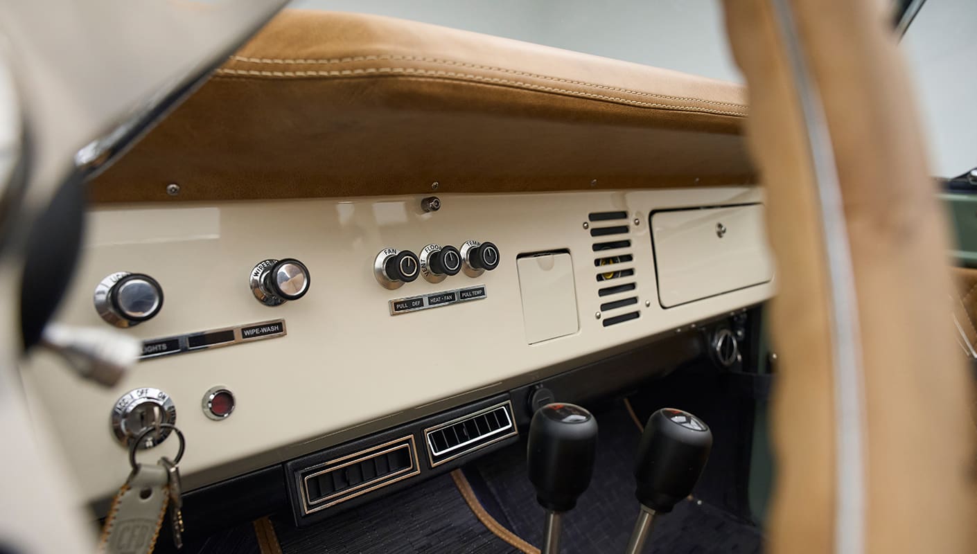 Our custom built bronco trucks offer uncompromising style with a vintage appeal. We craft custom vehicles for the connoisseur, taking bespoke requirements into account for a truly versatile vehicle. We can build you a truck like this, or you can build your own bronco. For more inspiration, or if you just want to hang out, see more vintage ford broncos for sale in our catalogue. Or just reach out for more information on how to get yourself behind the wheel of your own Classic Ford Bronco.