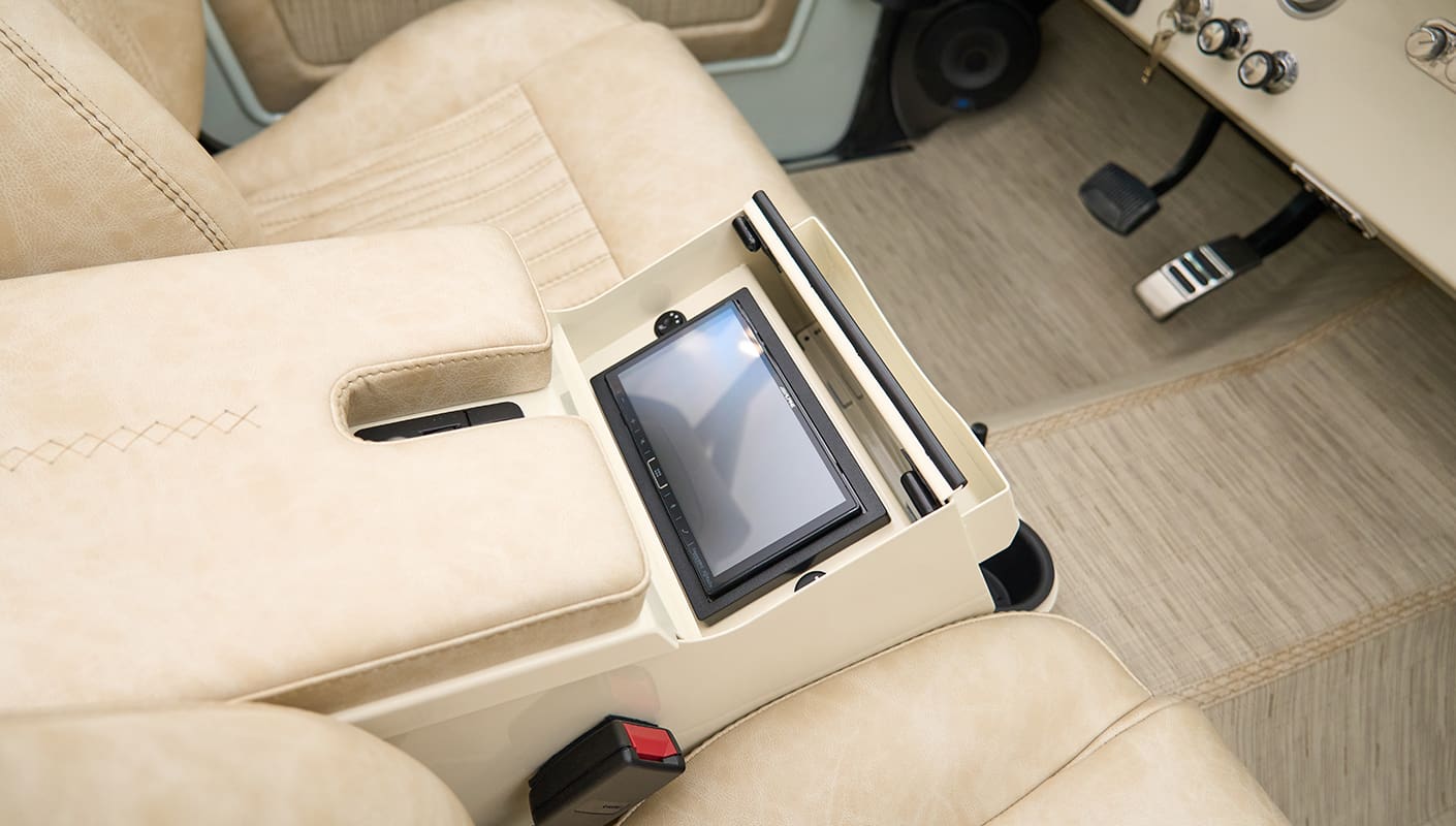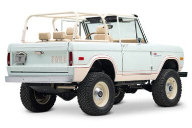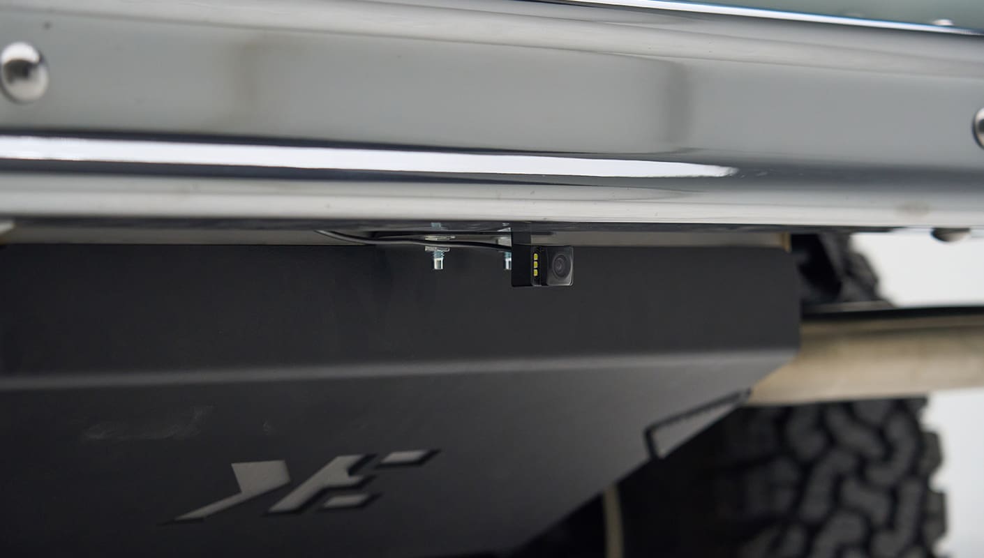 A tribute to classic design with modern refinement, the 1973 Stanley Ranch Custom Bronco embodies vintage charm as you explore rolling hills and open fields of a California ranch. Wrapped in the iconic Ranger stripe decal package and riding on vintage steelies with rugged 33” tires, this custom classic Ford Bronco combines timeless style with the toughness needed to handle dirt roads and ranch trails. Molded fenders, factory chrome bumpers, and AMP power steps add both function and flair, while the reverse camera ensures confident navigation across varied terrain.