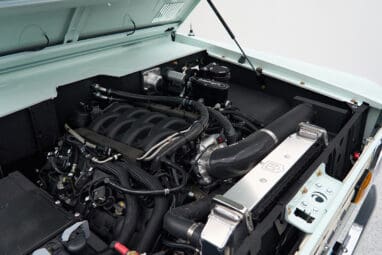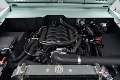 Inside, the thoughtfully designed interior features premium CFB custom Irish Cream diamond-stitched leather seats paired with durable Chilewich flooring—built to handle dusty boots and long days outdoors without sacrificing style. Upgraded rear panel accent lighting creates a warm, welcoming atmosphere, while modern tech like the Dakota Digital instrument cluster, touchscreen Bluetooth stereo with subwoofer, and USB charger keep you connected on every adventure. With safety features including a family roll cage, 3-point seatbelts, ICON locking center console, and heated seats, this restored classic Bronco delivers comfort, capability, and character for every ranch day and beyond.